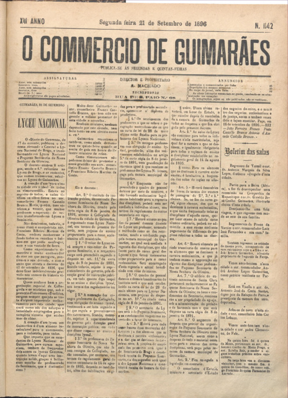 Comércio de Guimarães, nº 1142, de 21/09/1896