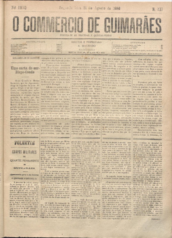 Comércio de Guimarães, nº 1137, de 31/08/1896