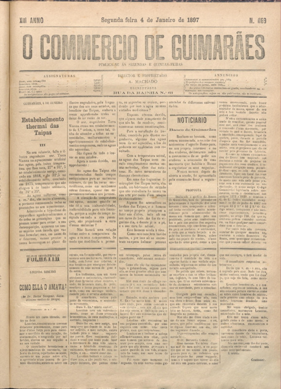 Comércio de Guimarães, nº 1169, de 04/01/1897