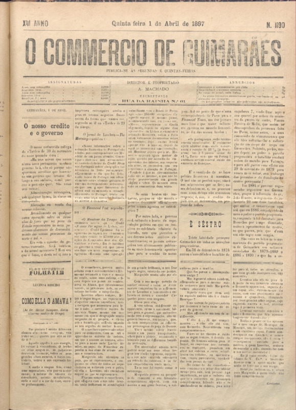 Comércio de Guimarães, nº 1190, de 01/04/1897