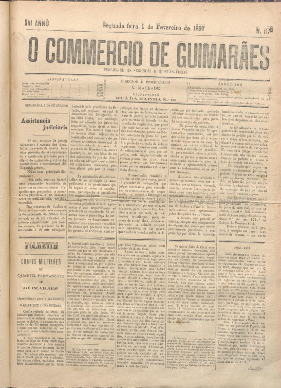 Comércio de Guimarães, nº 1176, de 01/02/1897