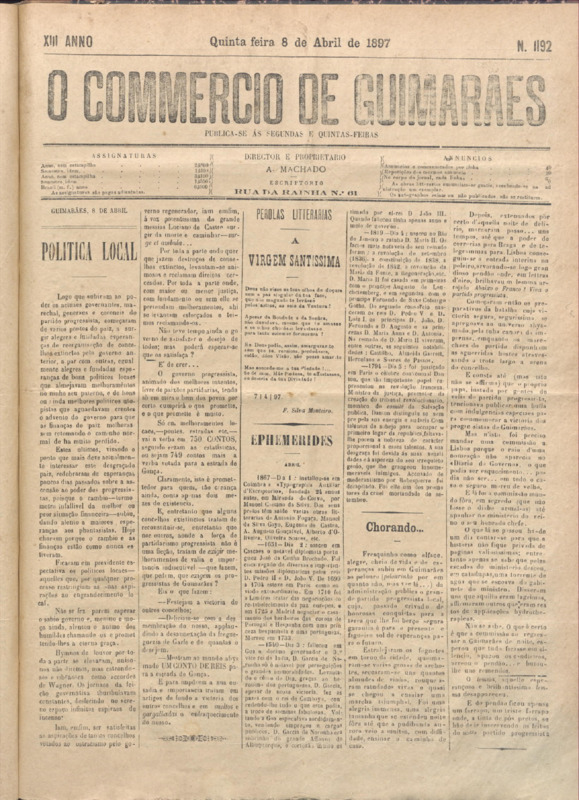 Comércio de Guimarães, nº 1192, de 08/04/1897