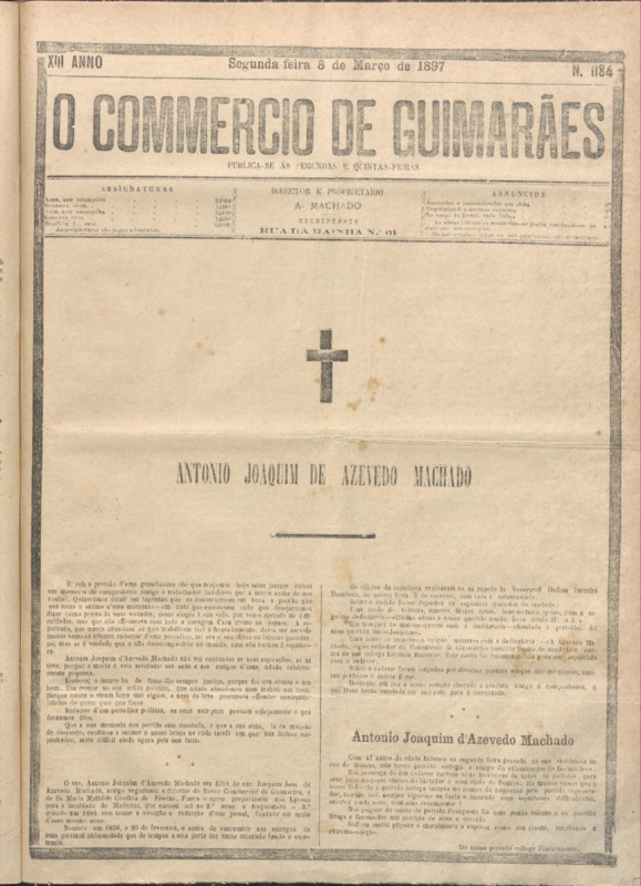 Comércio de Guimarães, nº 1184, de 08/03/1897