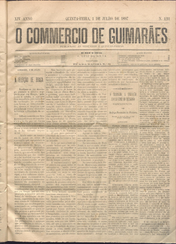 Comércio de Guimarães, nº 1211, de 01/07/1897