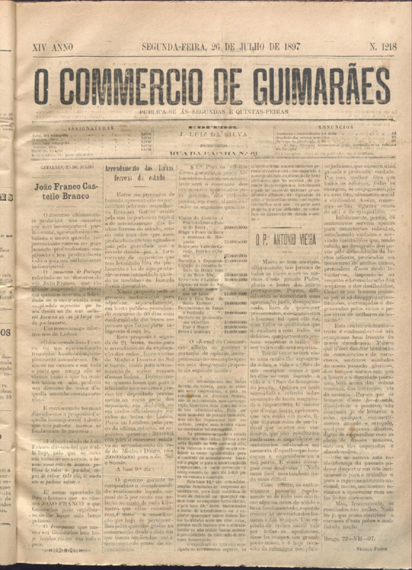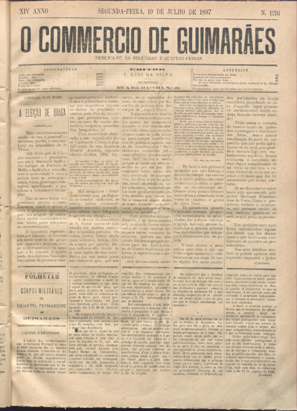 Comércio de Guimarães, nº 1216, de 19/07/1897