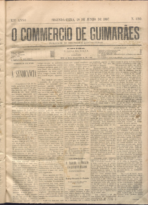 Comércio de Guimarães, nº 1210, de 28/06/1897