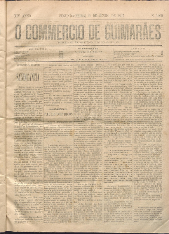 Comércio de Guimarães, nº 1209, de 21/06/1897