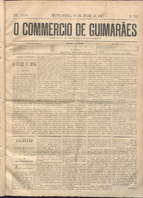 Comércio de Guimarães, nº 1217, de 22/07/1897