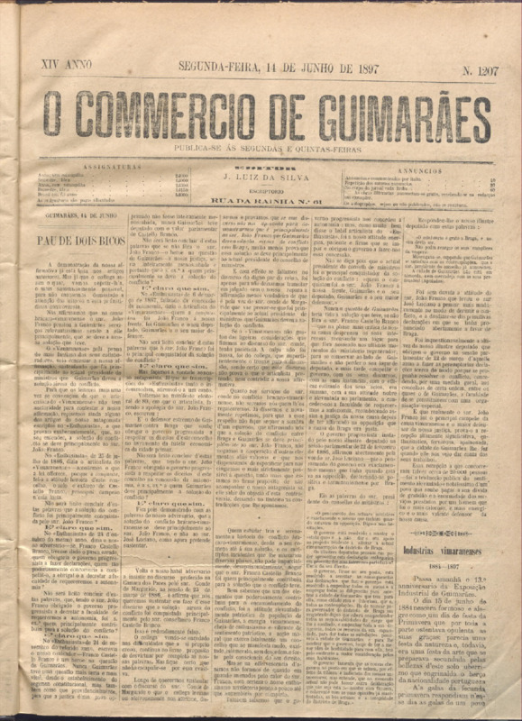 Comércio de Guimarães, nº 1207, de 14/06/1897