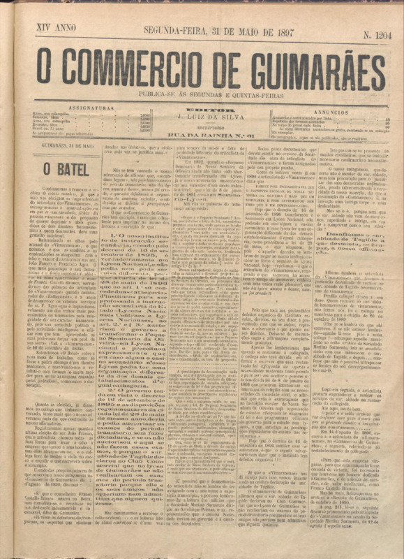 Comércio de Guimarães, nº 1204, de 31/05/1897