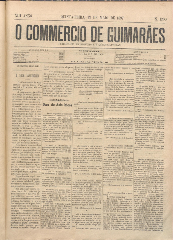 Comércio de Guimarães, nº 1200, de 13/05/1897