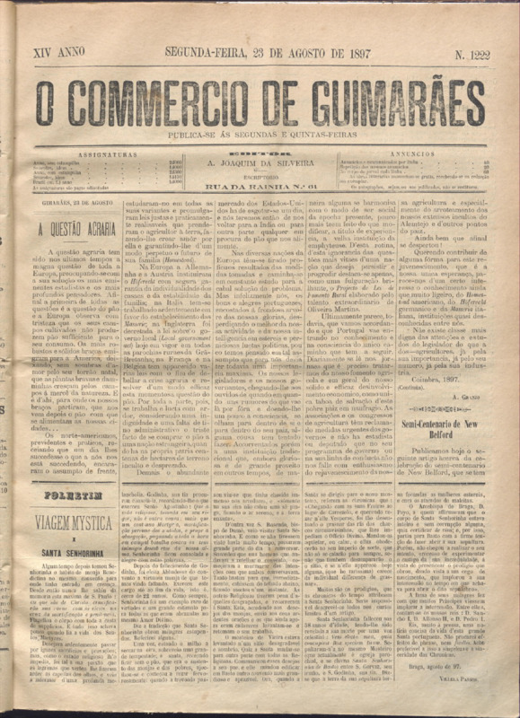 Comércio de Guimarães, nº 1222, de 23/08/1897