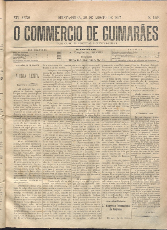 Comércio de Guimarães, nº 1223, de 26/08/1897