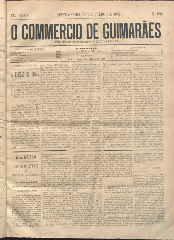 Comércio de Guimarães, nº 1215, de 15/07/1897