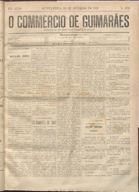 Comércio de Guimarães, nº 1233, de 30/09/1897