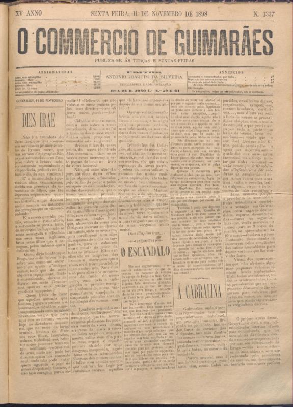 Comércio de Guimarães, nº 1337, de 11/11/1898