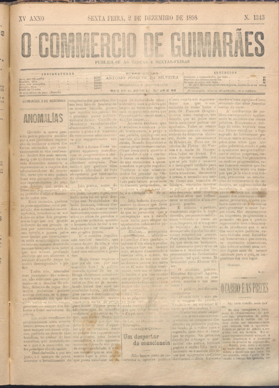 Comércio de Guimarães, nº 1343, de 02/12/1898