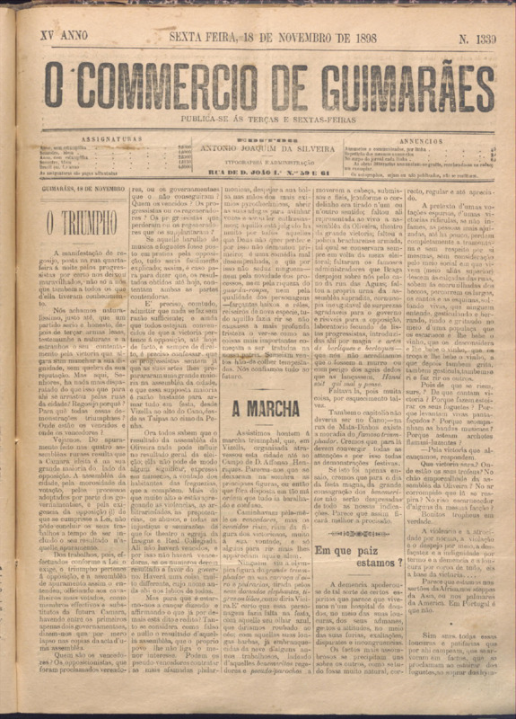 Comércio de Guimarães, nº 1339, de 18/11/1898