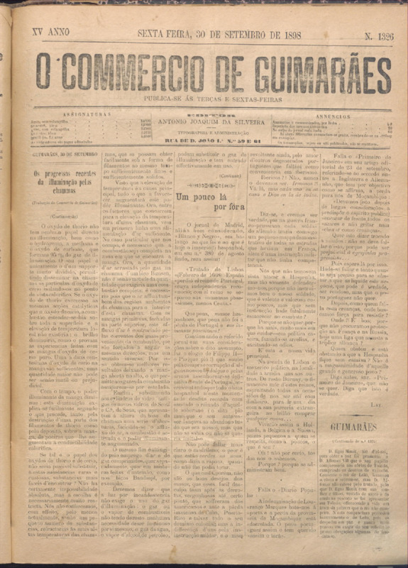 Comércio de Guimarães, nº 1326, de 30/09/1898