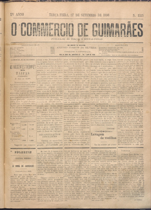 Comércio de Guimarães, nº 1325, de 27/09/1898