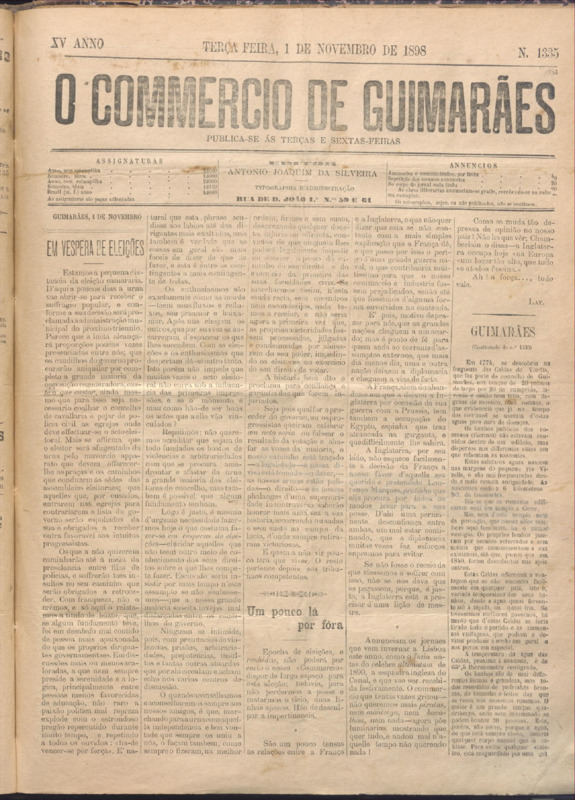 Comércio de Guimarães, nº 1335, de 01/11/1898