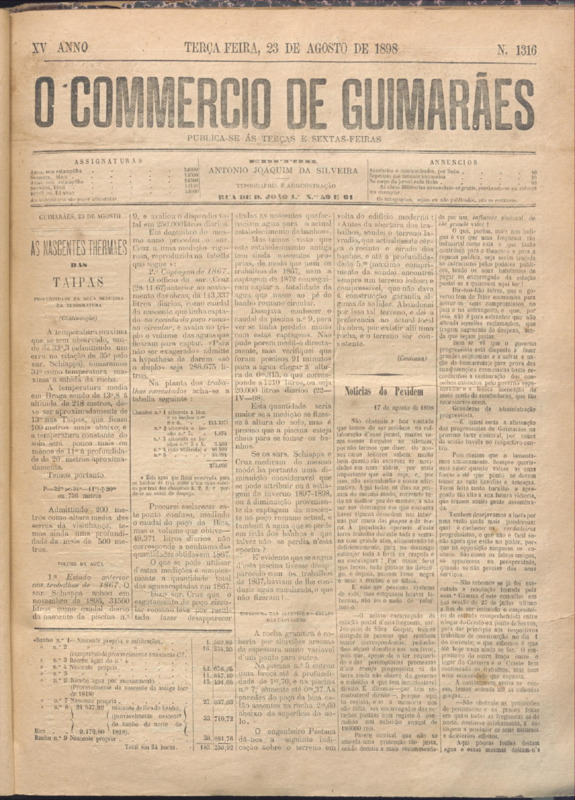 Comércio de Guimarães, nº 1316, de 23/08/1898