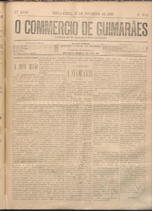 Comércio de Guimarães, nº 1342, de 29/11/1898
