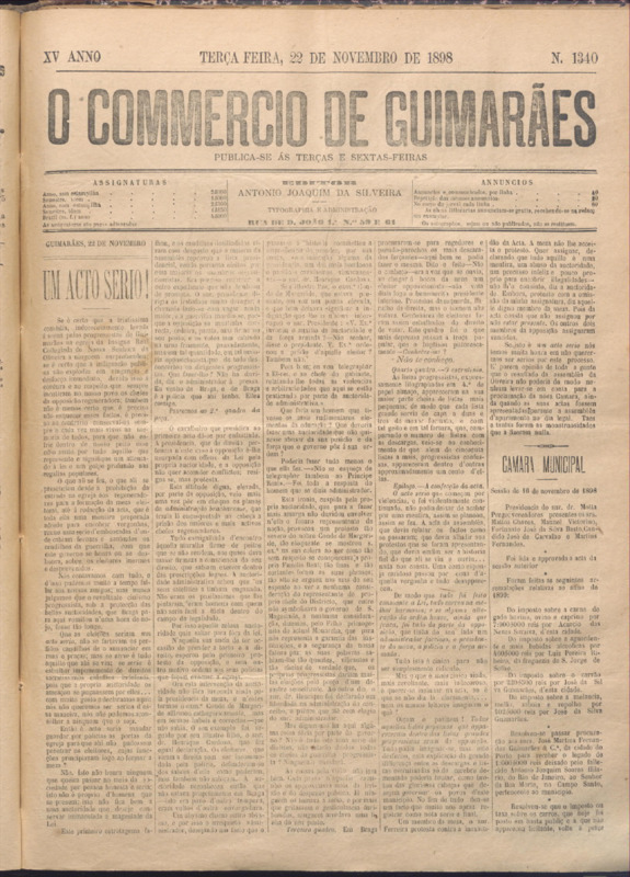 Comércio de Guimarães, nº 1340, de 22/11/1898