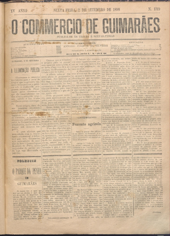 Comércio de Guimarães, nº 1319, de 02/09/1898