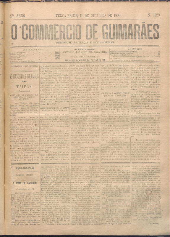 Comércio de Guimarães, nº 1329, de 11/10/1898