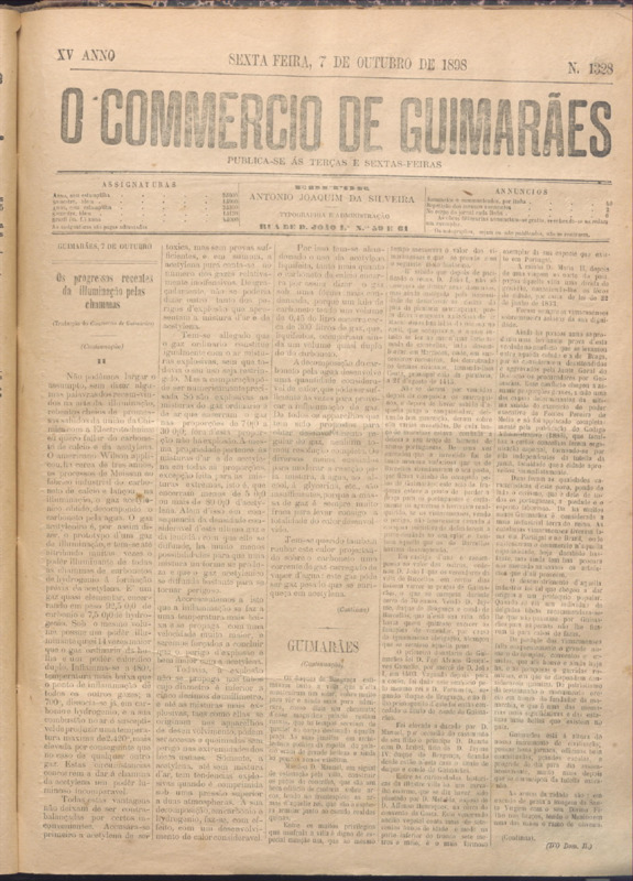 Comércio de Guimarães, nº 1328, de 07/10/1898