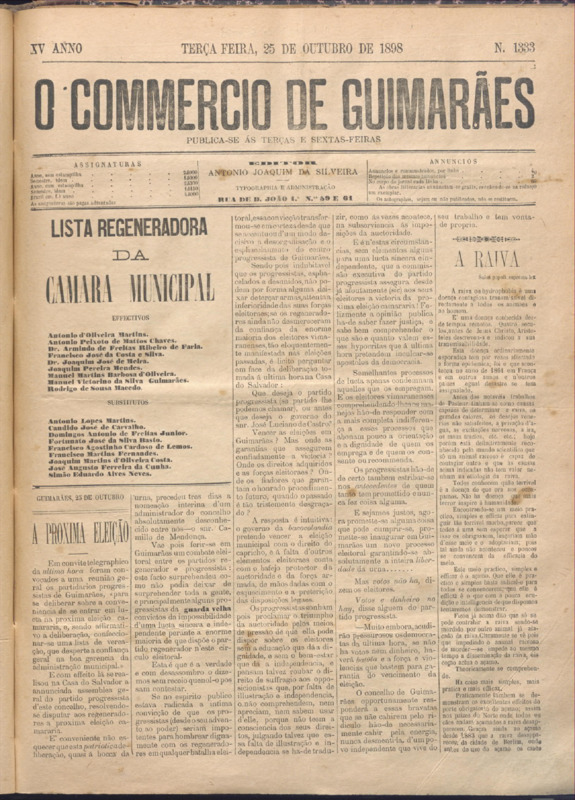 Comércio de Guimarães, nº 1333, de 25/10/1898