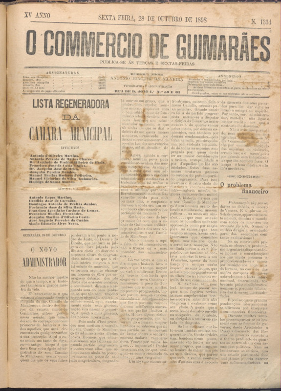 Comércio de Guimarães, nº 1334, de 28/10/1898
