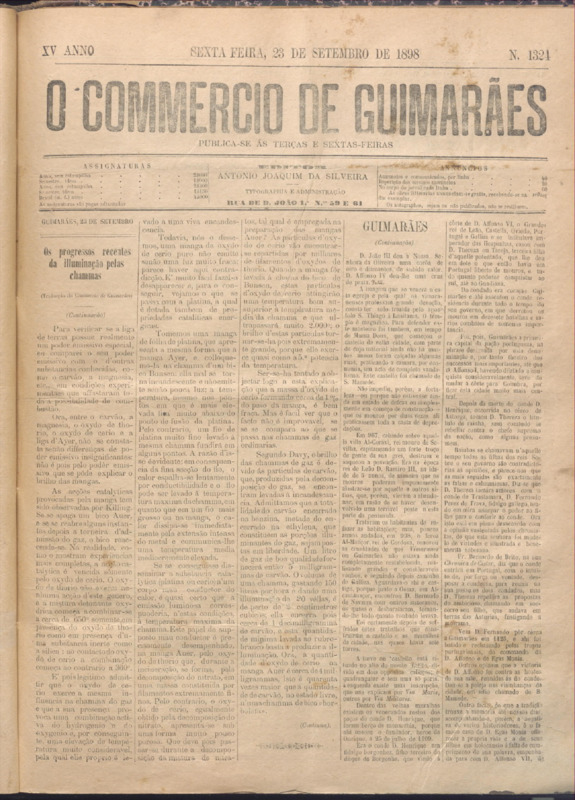 Comércio de Guimarães, nº 1324, de 23/09/1898