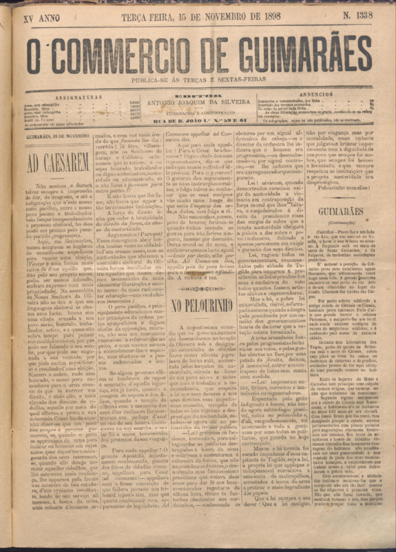 Comércio de Guimarães, nº 1338, de 15/11/1898