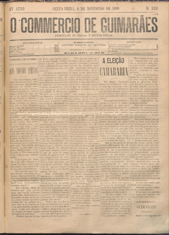 Comércio de Guimarães, nº 1336, de 04/11/1898