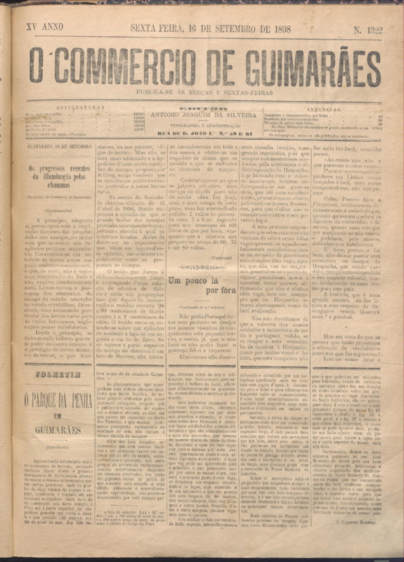 Comércio de Guimarães, nº 1322, de 16/09/1898