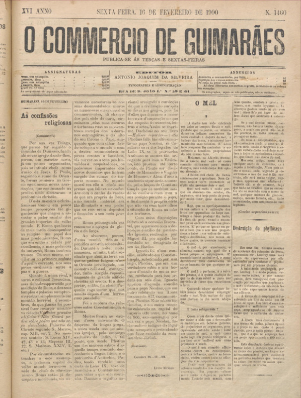 Comércio de Guimarães, nº 1460, de 16/02/1900