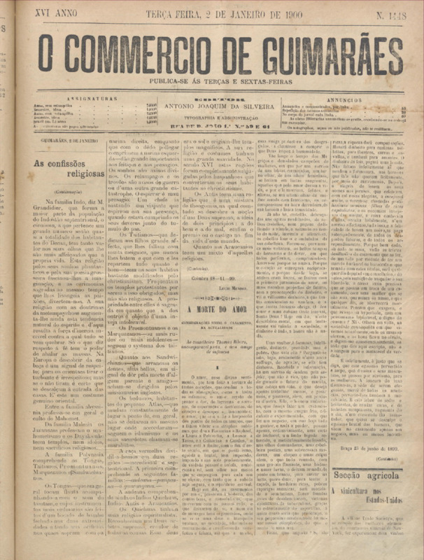 Comércio de Guimarães, nº 1448, de 02/01/1900
