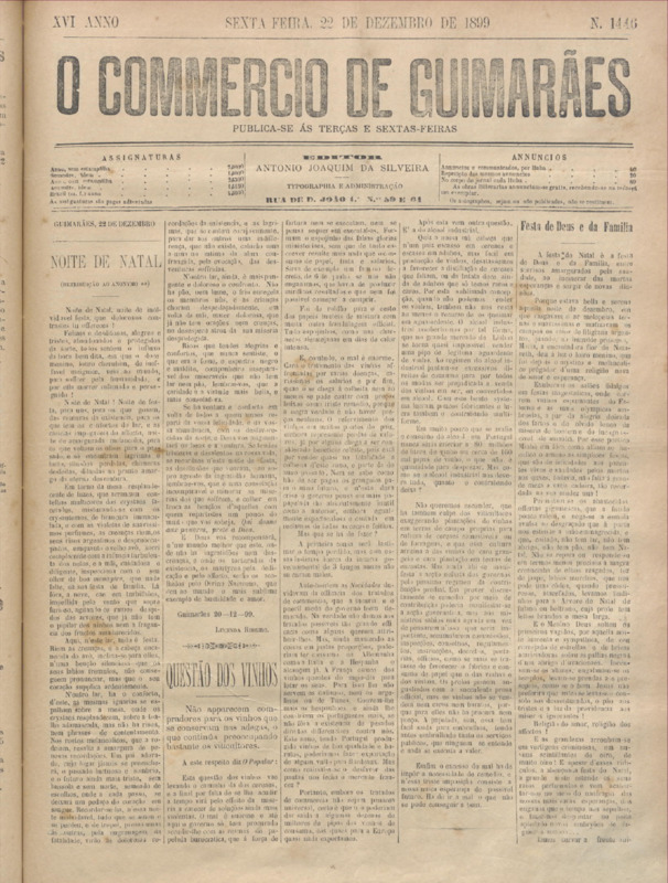 Comércio de Guimarães, nº 1446, de 22/12/1899