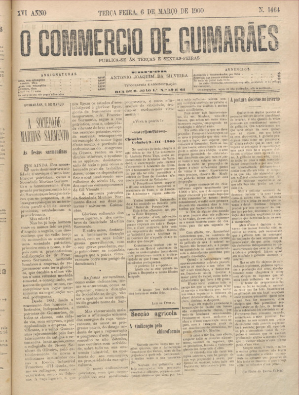 Comércio de Guimarães, nº 1464, de 06/03/1900