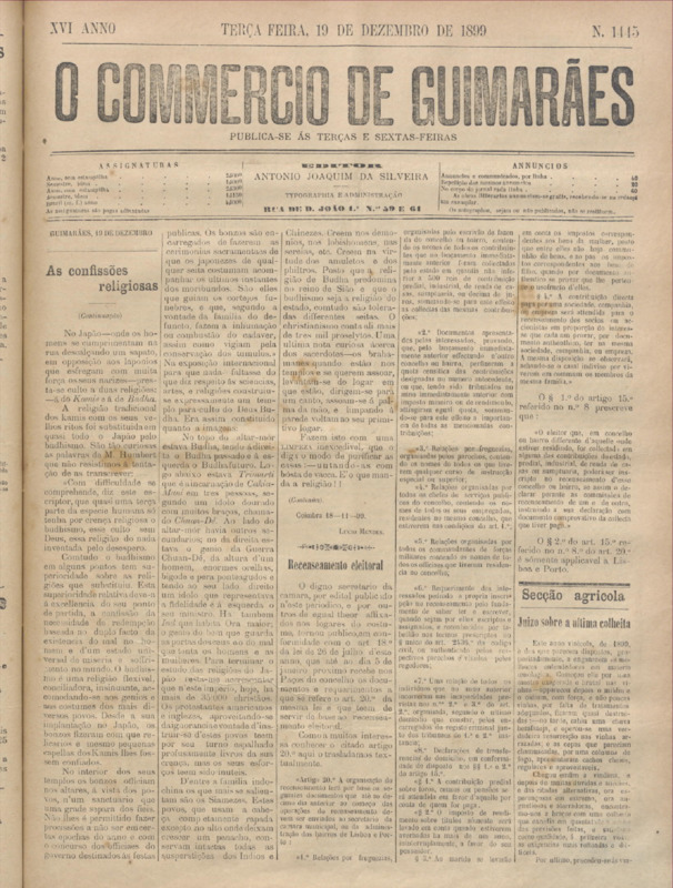 Comércio de Guimarães, nº 1445, de 19/12/1899