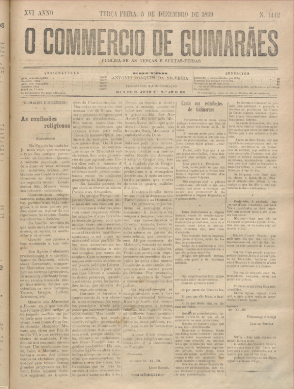 Comércio de Guimarães, nº 1442, de 05/12/1899