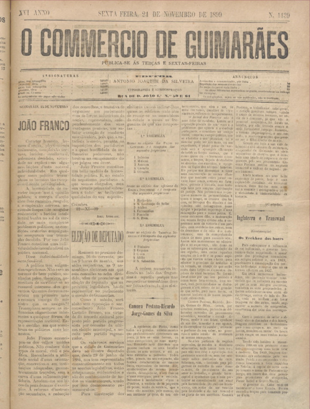 Comércio de Guimarães, nº 1437, de 17/11/1899
