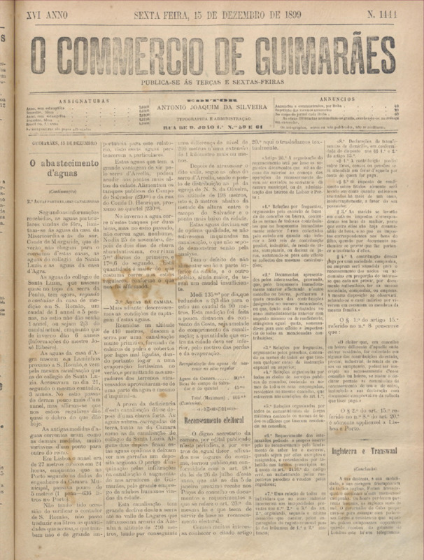 Comércio de Guimarães, nº 1444, de 15/12/1899