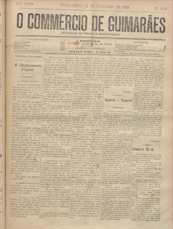 Comércio de Guimarães, nº 1438, de 21/11/1899