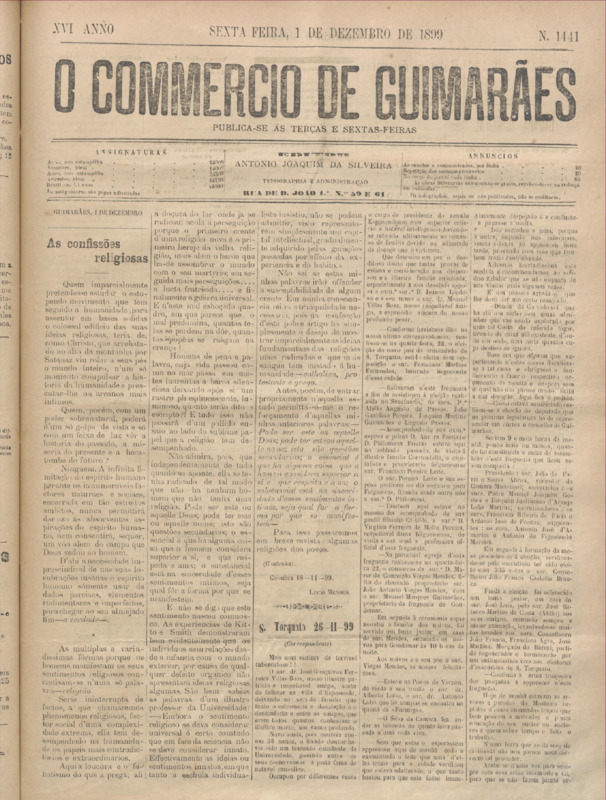 Comércio de Guimarães, nº 1441, de 01/12/1899
