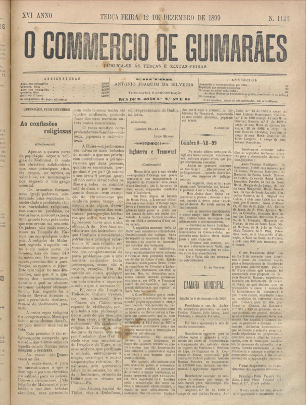 Comércio de Guimarães, nº 1443, de 12/12/1899
