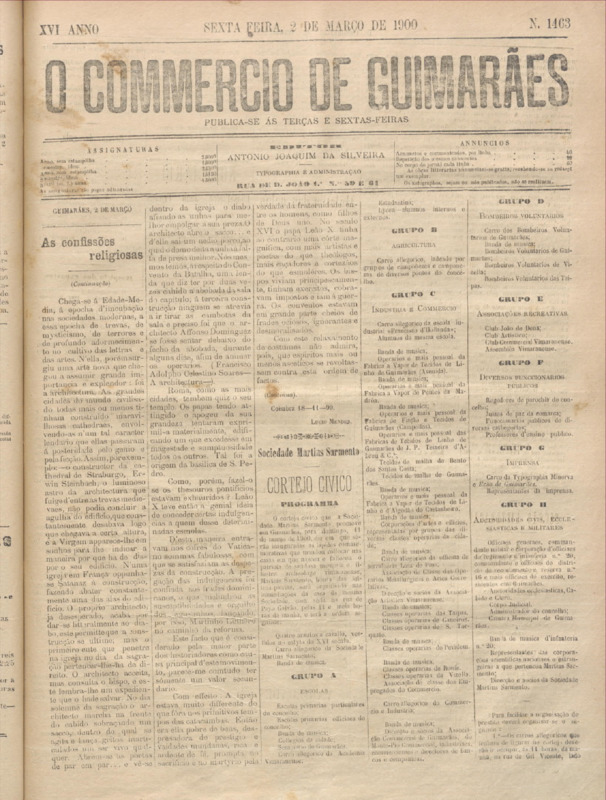 Comércio de Guimarães, nº 1463, de 02/03/1900