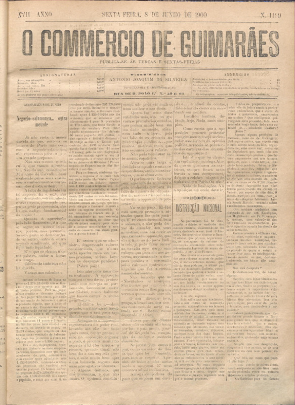 Comércio de Guimarães, nº 1489, de 08/06/1900